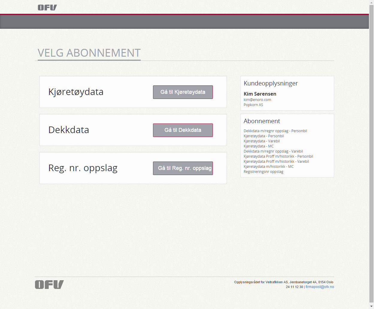 OFV Kjøretøydata er et abonnementsprodukt fra Opplysningsrådet for Veitrafikken AS og inneholder priser, tekniske data og utstyrsdata for alle nye personbiler, varebiler og motorsykler som er kommersielt markedsført i Norge.